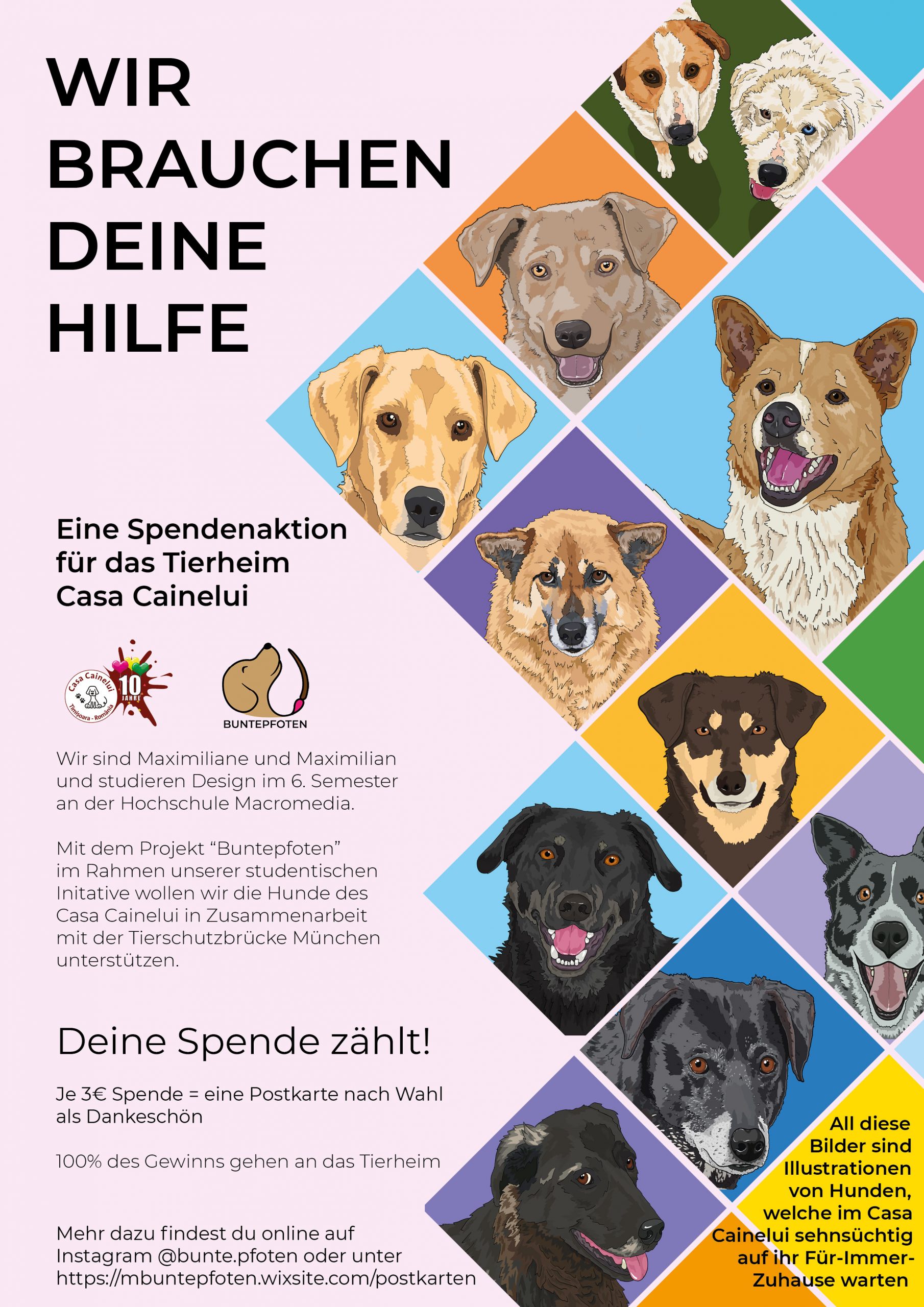 Buntepfoten – „colorful paws“ is a donation project for the animal shelter Casa Cainelui in Rumania.