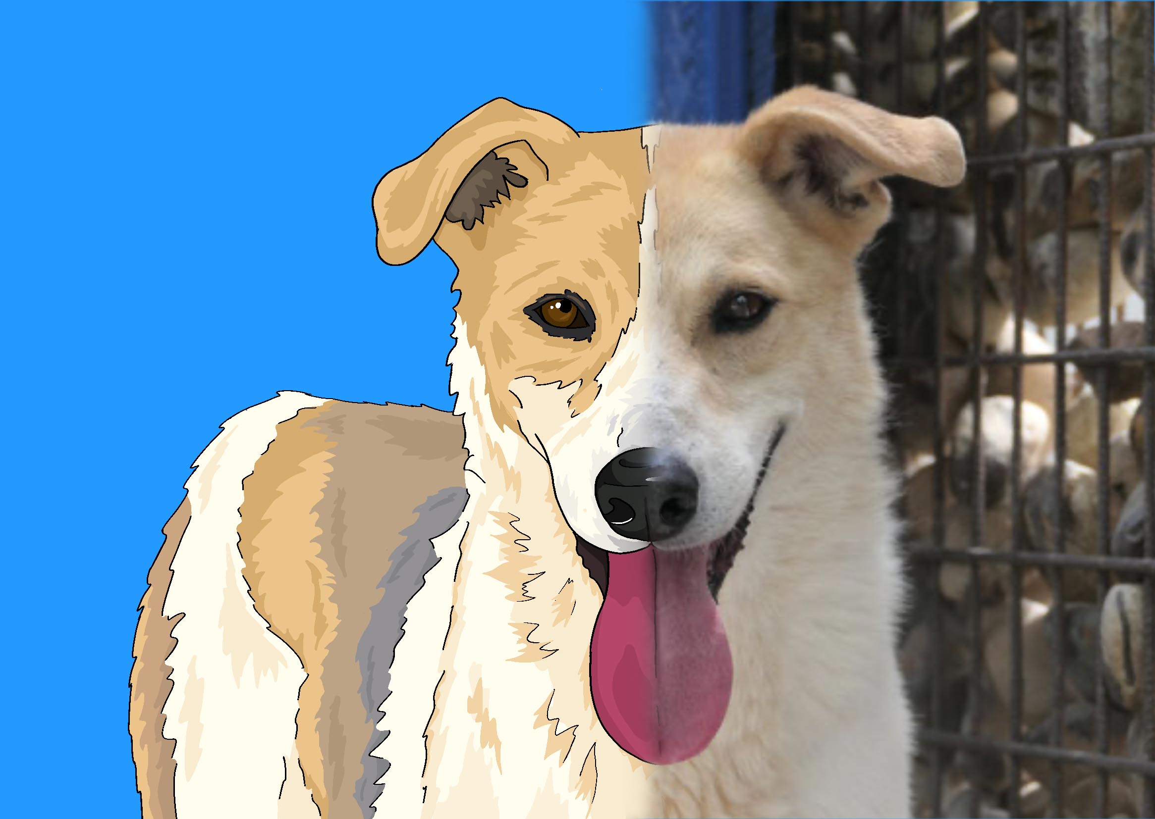 As part of my student initative, a fellow student and me created colorful postcards of dogs from the animal shelter. Not only to raise money but also to create awareness for the many dogs living there.