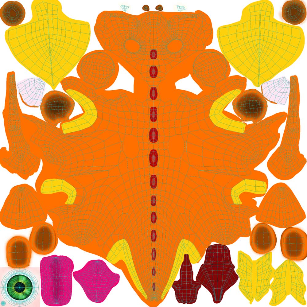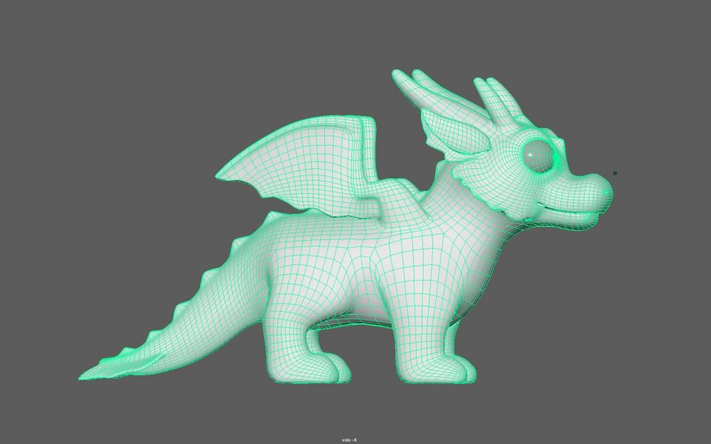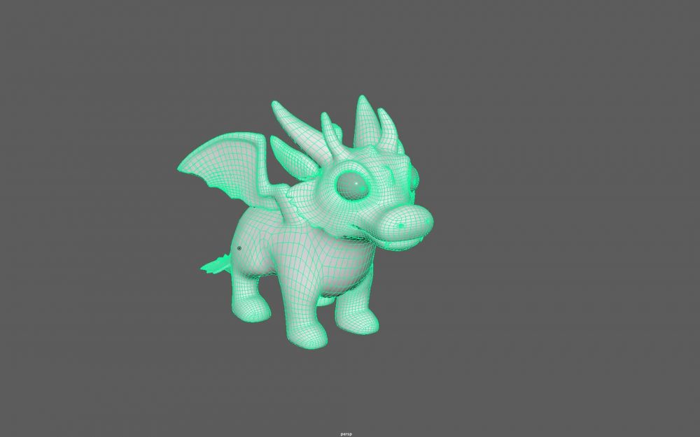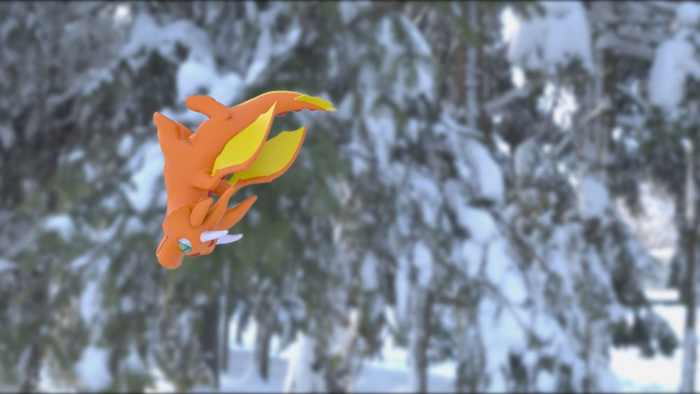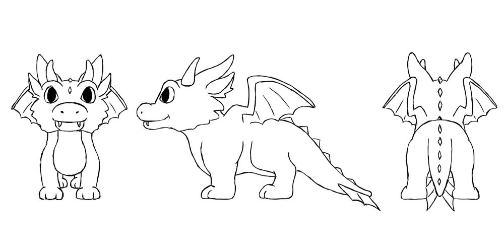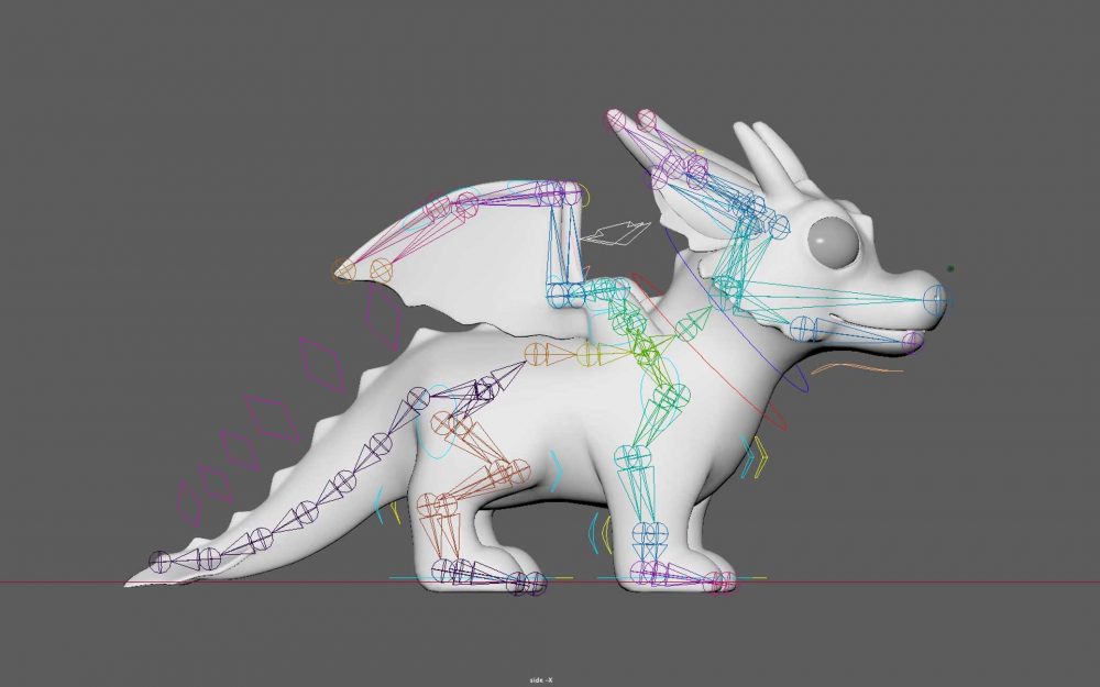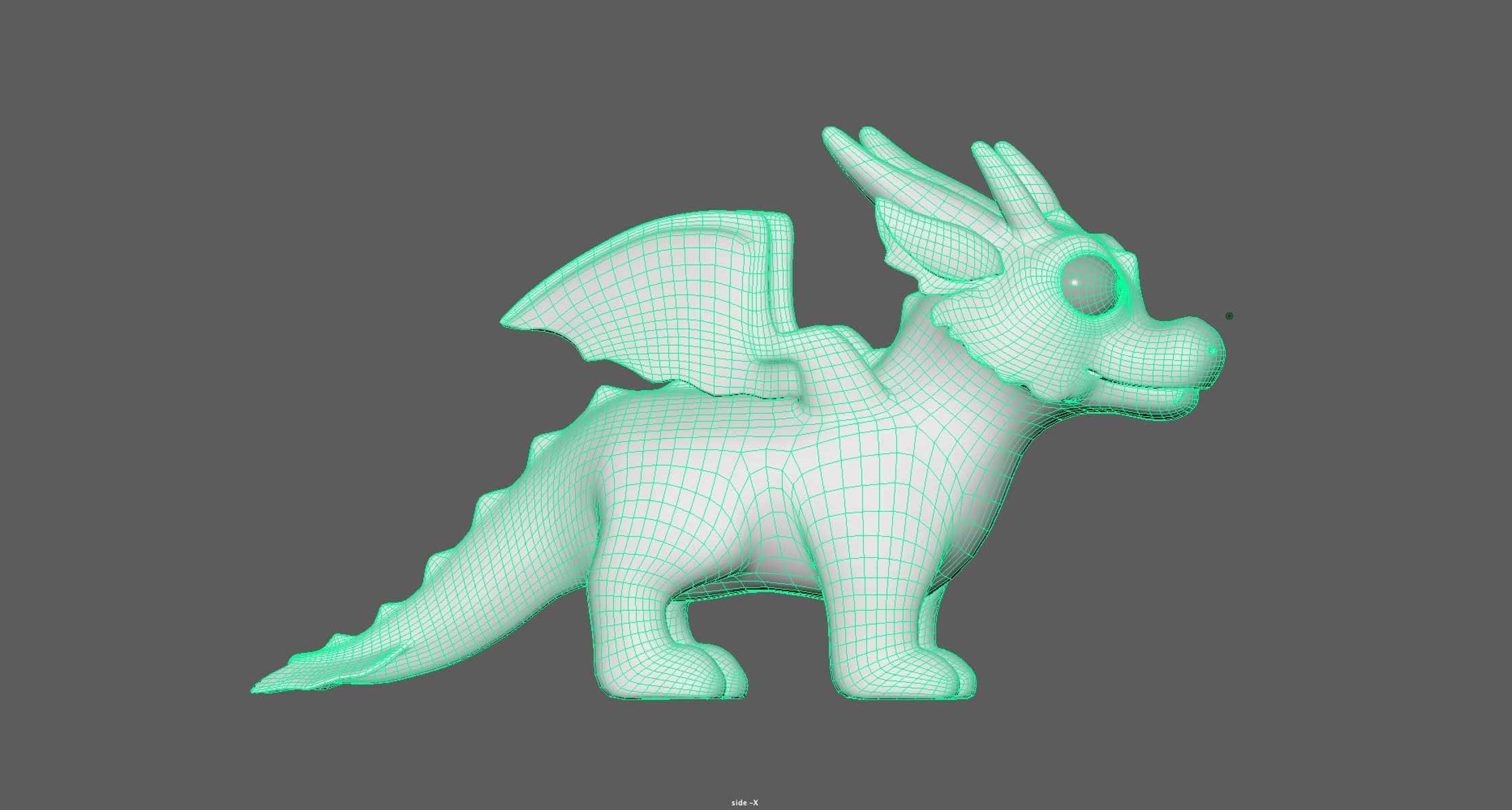 I created a little fire dragon living in an icy world. For the animation I chose a training sequence, in which he learns to roar an to fly